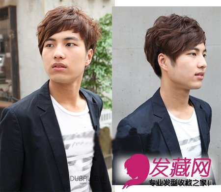韩式风味的短发纹理烫,低调的发色,显得很时尚阳光,弧度的卷度刘海,个性又带有可爱的味道。西装的搭配显得成熟稳重。非常适合成熟的大男孩!