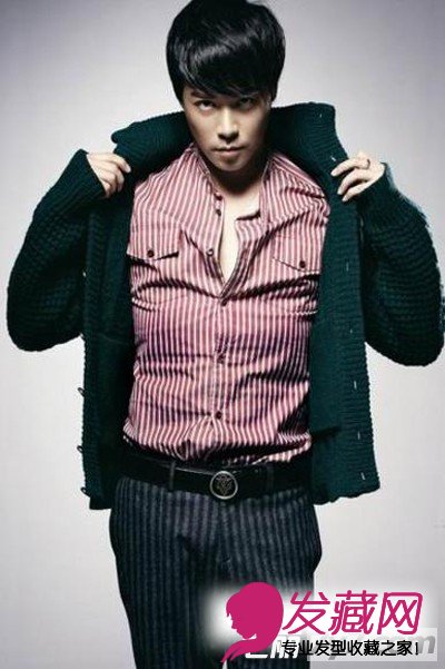 小编点评:刘海基本遮住额头,鬓角两旁有层次的头发修饰脸型,乌黑的发色,时尚的着装,帅气!