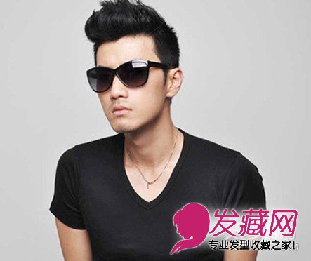 小编点评:带着摇滚气息的男生短发发型,顶部头发很好的竖立起来,个性而有型,戴上黑色墨镜更显雅痞气质。