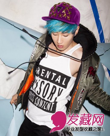 银赫是新加入Super Junior-M小分队的成员,他的舞蹈和rap是在组合里最突出的,充满朝气的大男孩。本次专辑造型也小玩儿个性染了一个蓝色的头发,其中还夹杂青绿色的挑染,这两个颜色的融合非常 完美 ,再戴上嘻哈风的帽子,整个形象跟他本人的气质非常搭。