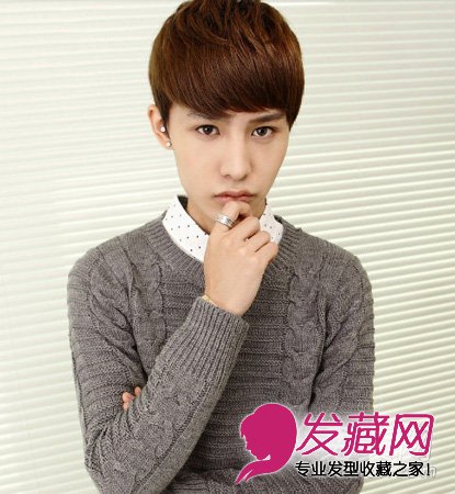 自然蓬松的定位烫发型,打造校园帅校草形象,没有分线的短刘海自然有型,浅棕色染发,尽显青春阳光邻家男孩味道。