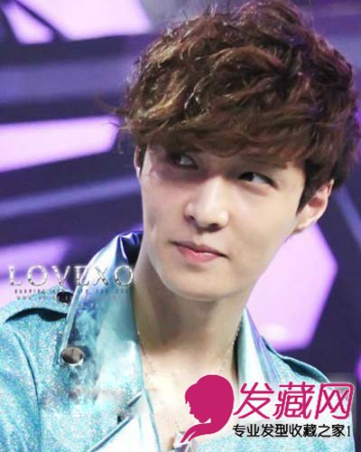 EXO-M张艺兴LAY,酒窝美男全场笑不停,很自然的花美男发型,大片刘海修饰脸型之余还能减龄,头发的卷度没有规律,阳光帅气。