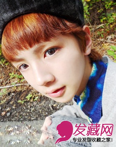 棕红色头发看起来非常抢眼,秋日的阳光气息尽显,戴上帽子,只留出刘海造型,眉清目秀的少年,青春无限。