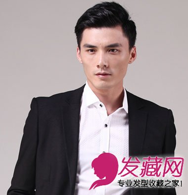 简约的白色衬衫穿搭黑色西装,经典的正装搭,侧分的短头发,随意的梳理,露出额头,成熟霸气。