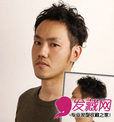 小编点评:这款短发修剪得相对较短,再经过烫卷处理,让整个造型看起来更加清爽,没有刘海的造型显得更加阳刚。