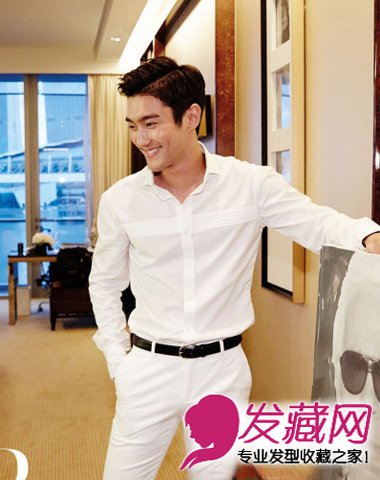 这是时尚初期白马王子的标准发型,二八分突出绅士气质,光洁的短发搭配白色的衬衫,超有魅力高富帅的气度。