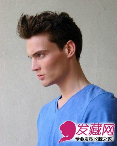 这款短碎的男生发型,用发胶将刘海全部梳起,形成十分有型的鸡冠形状,这样的独特又不失时尚感的男生无刘海短发,十分的受欢迎哦!