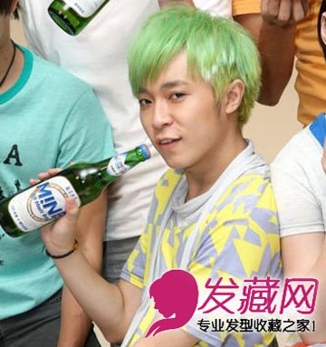 青草绿的颜色配上一款时尚的短发,三七分的刘海,充满了时尚与活力.