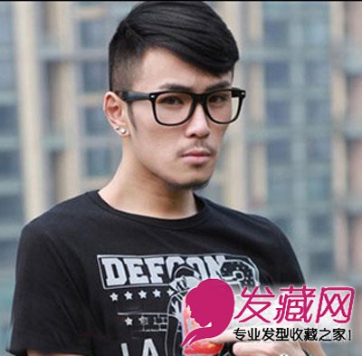 这款斜梳的男生短发,衬出了男生立体感的五官,一副黑色边框眼镜的搭配,立即展现出男生帅气的潮流魅力。