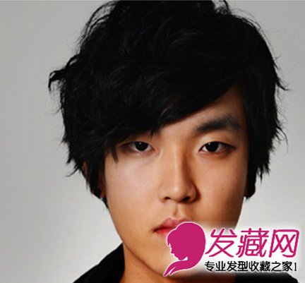 37分的斜刘海,让原本就精致的脸庞显得更修长,凌乱层次的头发裁剪,展现出一种叛逆大男孩的形象。搭配黑色单纯的头发,更是展现将可爱与成熟的气息一同呈现。