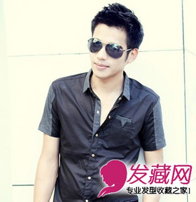 2013非常清爽个性的一款男生发型,将全部头发向上梳,打造出蓬松自然的效果,配上墨镜帅气有型。