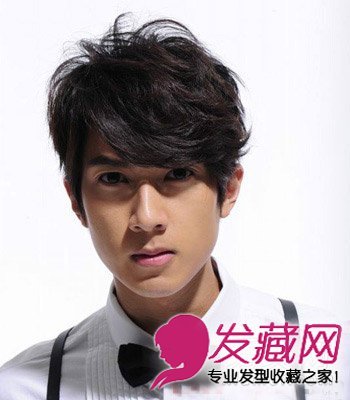 这款男生短发,厚重微卷的斜刘海,很好的修饰了脸型,头发蓬松而凌乱,显得个性十足。