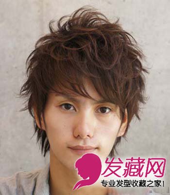 蓬松的男生卷发发型,大片的斜刘海,遮住了额头,很好的修饰了脸型,十分有个性魅力的一款男生发型。