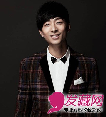 相对于黑色西装的成熟稳重,这样个子西装更突显清新男生阳光率真感,黑色短发修饰脸型。