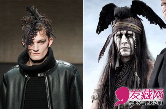 Alexander McQueen则是向约翰尼德普的新片《独行侠》学了一手。只是把鸟换成了羽毛……