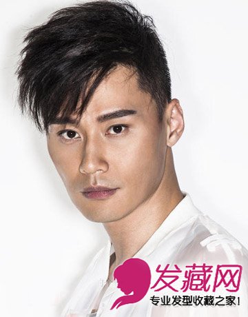 自然的纹理烫短发造型非常帅气有型,斜长的刘海使脸部线条看起来成熟度大增,刚毅的五官凸出浓浓的男人味。