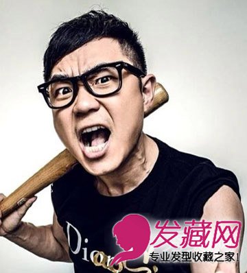 狂放不羁的表情,屌丝感尽显,个性超短发,手拿棒棍痞子范十足。