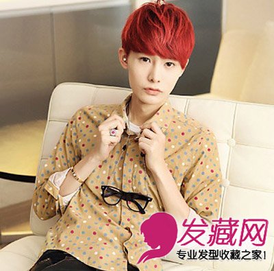 顺滑的发丝也不是只有黑色的发丝才能修饰男生的形象,一头闪亮的酒红色秀发发丝搭配蓬松的梳在额头上的丝滑效果。下层的秀发整齐的发尾样式有着良好的淑男亮眼气质修饰效果,不带毛发才显出精致和秀气的感觉。