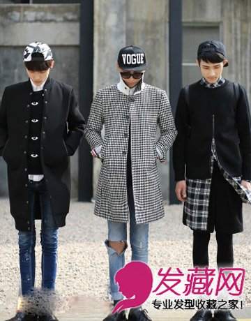 帅气的大衣在身,牛仔裤尽显高挑的身材,不同的时尚发型凸显魅力潮男范。