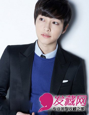 偏分的齐刘海短发发型,一身西装革履,不过怎么看都还是清纯的大男孩形象。