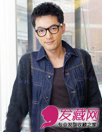 戴着眼镜的胡歌立马变斯文清新,清爽发型,牛仔拼接外套,个性又时尚。