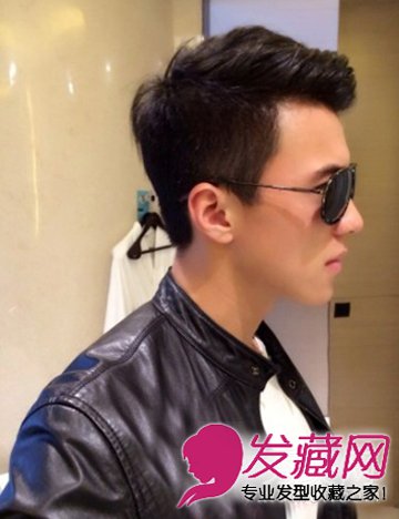 侧分短发,保持自然黑色调,十分利落养眼,皮衣墨镜,一股酷酷的阳刚男人味。