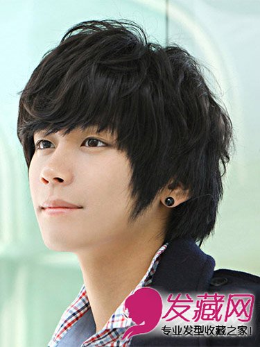 这是一款经典的韩国男生发型,厚厚的刘海盖住额头,很好的修饰脸型之余还凸显男生立体的五官,黑色的发色让男生看上去散发温柔气息。
