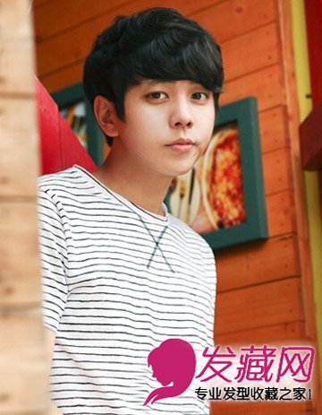 乌黑靓丽的自然发色加上流行的男生纹理烫发,再吹出蓬蓬在质感,斜分的刘海加以修饰,完美展现男生俊俏的帅气的脸型。