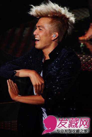 这款莫西干发型,两鬓铲光,灰白色的染色,搭配蓬松的发丝 ,巨星范十足。