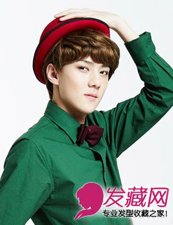 金棕色的短发,做成微卷的头发,个性新潮,帅气的脸庞,搭配喜庆的红帽,绿色的衬衫,是不是有种魔术家的感觉啊,帅呆了简直。