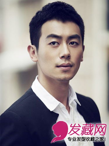 这款发型比较硬朗。个性短发露出额头,加上立体五官,英气勃发,打造硬汉形象。