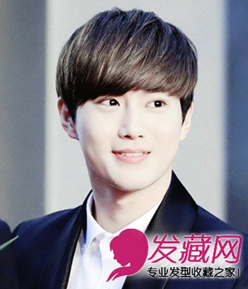 这款短发是韩国最新的男士流行发型设计,纹理烫的效果让短发更富有层次感,齐刘海修饰脸型,帅气又时尚的男士短发。