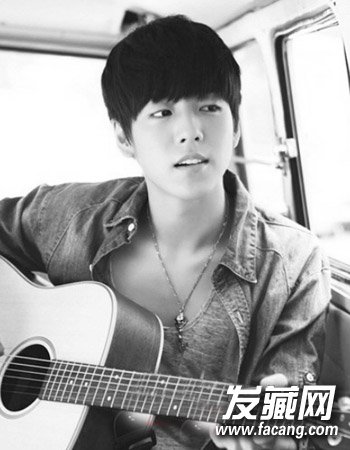 阳光少年最爱的一款短发发型,厚重的平刘海微微打碎勾勒出小脸的精致来,造型显得简单大方 ,没有过多打理更显男生清爽干净的一面。