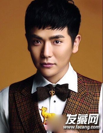 斜分的刘海发型,搭配精简的蓬松短发设计,再加上乌黑的健康发色,起到很好的修颜减龄效果,是一款流行的男士明星发型。