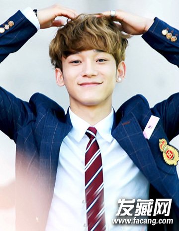 再是一款可爱而显青春范的阳光男孩发型,厚重的齐刘海造型设计,而配合深浅不一的棕色染发与时尚的纹理烫造型设计可是最显小男孩的清新帅气风的哦,而且还有十足的韩范。