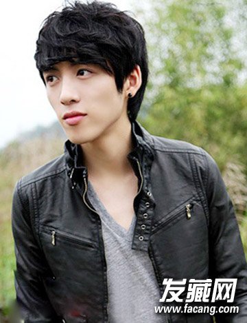 看上去比较酷酷的一枚小帅哥,修颜的斜剪短发,刘海采用韩式烫发,帅气增加潮流个性,穿搭皮衣,俊美的容颜显得更加忧郁迷人。