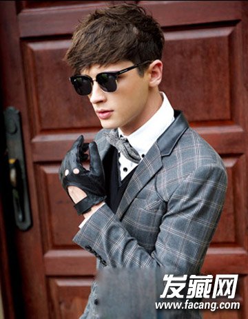 一款很显熟男魅力风的男生颊光造型,利用的是简单的齐刘海造型设计,而时尚的棕色染发与微显蓬松的烫发造型更显成熟男人的沉稳气质风。