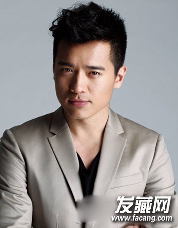 很适合职场熟男的一款时尚颊光造型图片,清新自然的乌黑短发现清新自然的颊光与露额造型相搭将男生的脸型完全呈现出来简单的西装造型更显职场干练风。