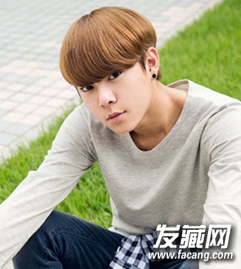 尖下巴适合什么发型呢?这款棕色系的齐刘海短发发型,不仅夏季更清爽,而且还很时尚哦,萌系帅男超养眼。