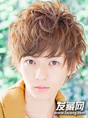 日系男生发型应该如何打理呢?这款个性烫发发型,蓬松的短发,层次感分明的发丝,搭配平刘海下的瓜子脸,更显潮男气概。