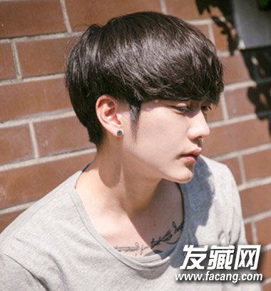 皮肤比较白的男生该怎么打理头发呢?这款栗色系的齐刘海男生短发发型,搭配白净的脸庞,突显十足阳刚之气,依然很man哦。