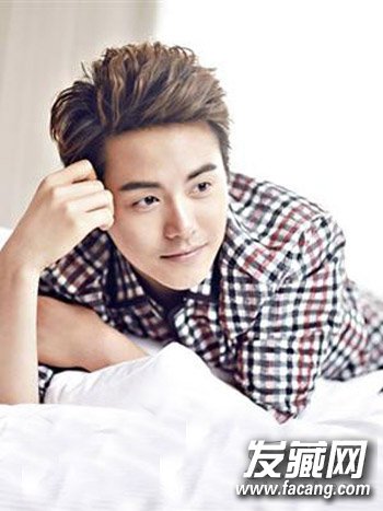 棕色系的蓬松短发,既能突显你的时尚与个性,同时还能提亮肤色哦,搭配帅气的俊脸,简单的格子上衣,阳光帅气又显男人味哦。