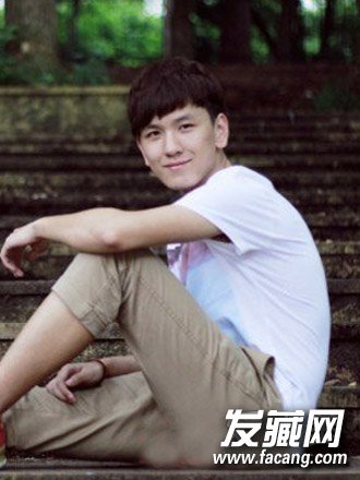 夏天男孩子穿上短T,剪个清爽的男孩子短刘海发型,不仅爽朗许多也是萌感十足,棕色染发增加了时尚感,韩范十足。