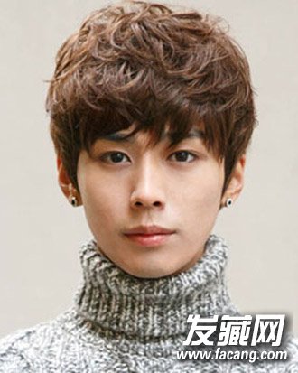 一头清爽的男生短发发型,染成了棕色的发色,烫成了纹理烫的造型,白净的俊脸,突显十足萌系帅男本色。