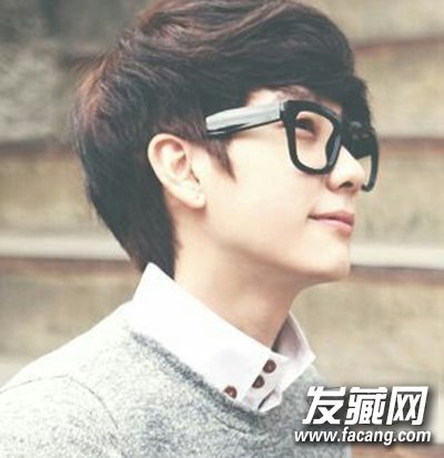清爽的男学生校园发型的设计,一款个性的斜刘海短发搭配上眼镜显露出男生文质彬彬的气质来,颇有暖男气质。