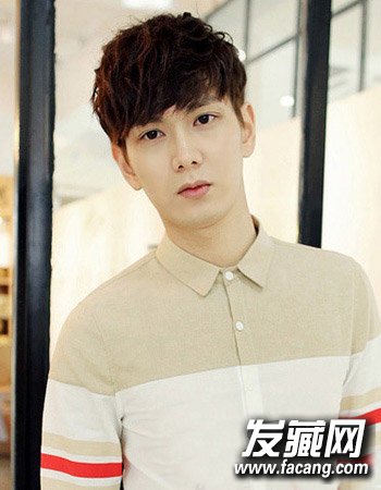 清新低调的深棕色染发颜色时尚吸睛,再搭配这处碎发形式的齐刘海造型设计与简单的纹理烫短发造型更添男生十足的阳光帅气感。