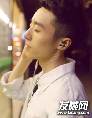 很时尚的一款男生个性的烫发发型周围剃短而中间形成时尚的短卷发烫发出来,不仅有气质而且整个造型的设计显露出别致的时尚感来。