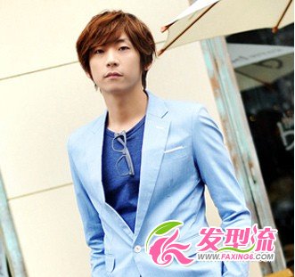 蓬松有型的男生烫发发型,线条分明很是吸引我们的眼球。金棕色的发色呈现出优雅气质,是日韩秋冬流行的烫发发型。蓝色的西装突显出帅气时尚。