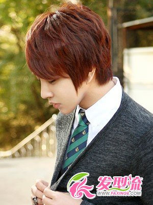 棕红系的发色略显张扬,在阳光更能散发出明媚的色泽。鬓角层次的修剪贴合耳际轮廓,搭配斜刘海整体呈现出流线形发丝线条。头顶的纹理烫制造出跃动感,令发丝更显动感,如此帅气的发型必定虏获不少MM的芳心哦!