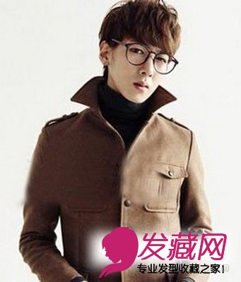 一款非常好看的男生时尚烫发发型,略带弧度的刘海,很有范儿,显得非常与众不同。头顶发丝烫出蓬松效果,为整个发型注入了一股活力,尽显青春的气息和蓬勃的朝气。淡淡的栗子色染发,增添了时尚气息。戴上一副大大的黑框眼镜,散发出斯文沉稳的轻熟男气质。